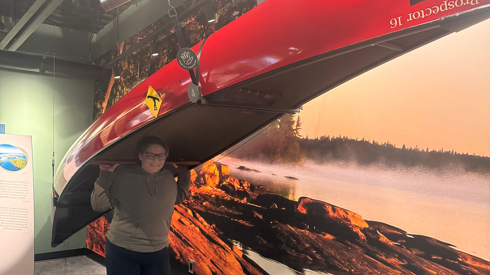 The collection is incredible: hundreds of canoes and paddled watercraft from across Canada and around the world. Each one tells a story — not just of where people traveled, but why. As someone who spends a lot of time outdoors hiking, camping, and paddling, I found myself constantly drawing connections between the adventures we choose today and the journeys people relied on for survival centuries ago.