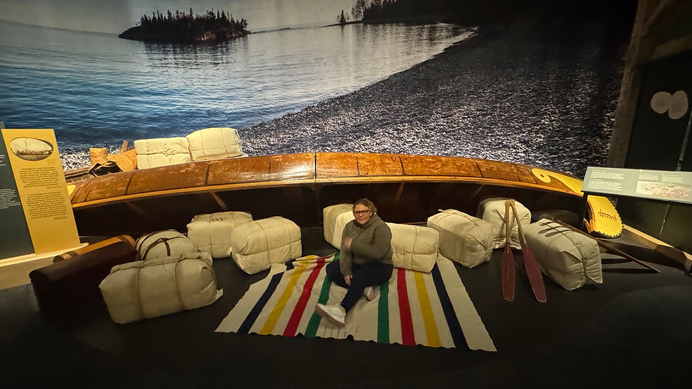 What made this part especially fascinating was the display of artifacts that would have been carried inside the canoes. Seeing trade goods, tools, and even liquor bottles brought a very human element to the story. It wasn’t just about commerce — it was about endurance, long days on the water, relationships between traders and Indigenous communities, and the realities of life on the move.
