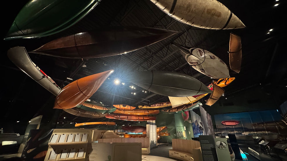 Inside, the museum is bright and expansive. Can you imagine canoes suspended overhead, almost like motion frozen in time? It doesn’t feel stiff or untouchable — it feels alive. As you move through the space, you quickly realize this isn’t just about boats. It’s about movement, survival, exploration, and the relationship between people and nature.